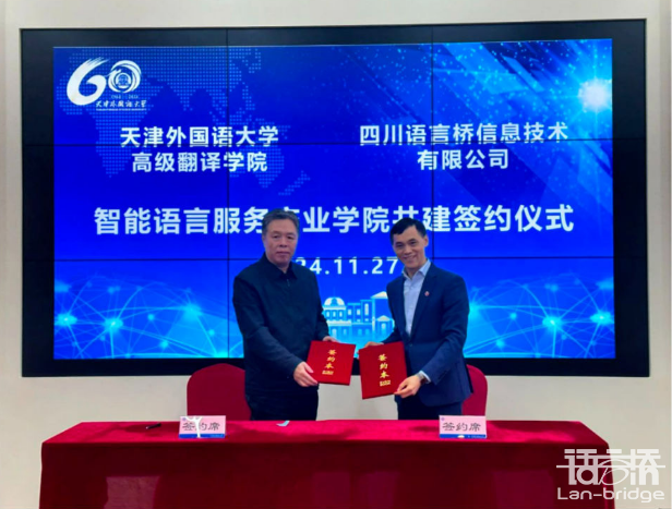 在行業碩士生導師聘任儀式中,郭芃為朱憲超、四川語言橋信息技術有限公司總監李晶頒發了天外高級翻譯學院碩士生導師聘書,并共同簽署了《共建智能語言服務產業學院合作備忘錄》與《共建人工智能翻譯實驗室合作備忘錄》,標志著雙方在智能語言服務行業領域的合作切實地向前邁出了實質性步伐,為智能語言服務行業的持特續進步注入了新動力。